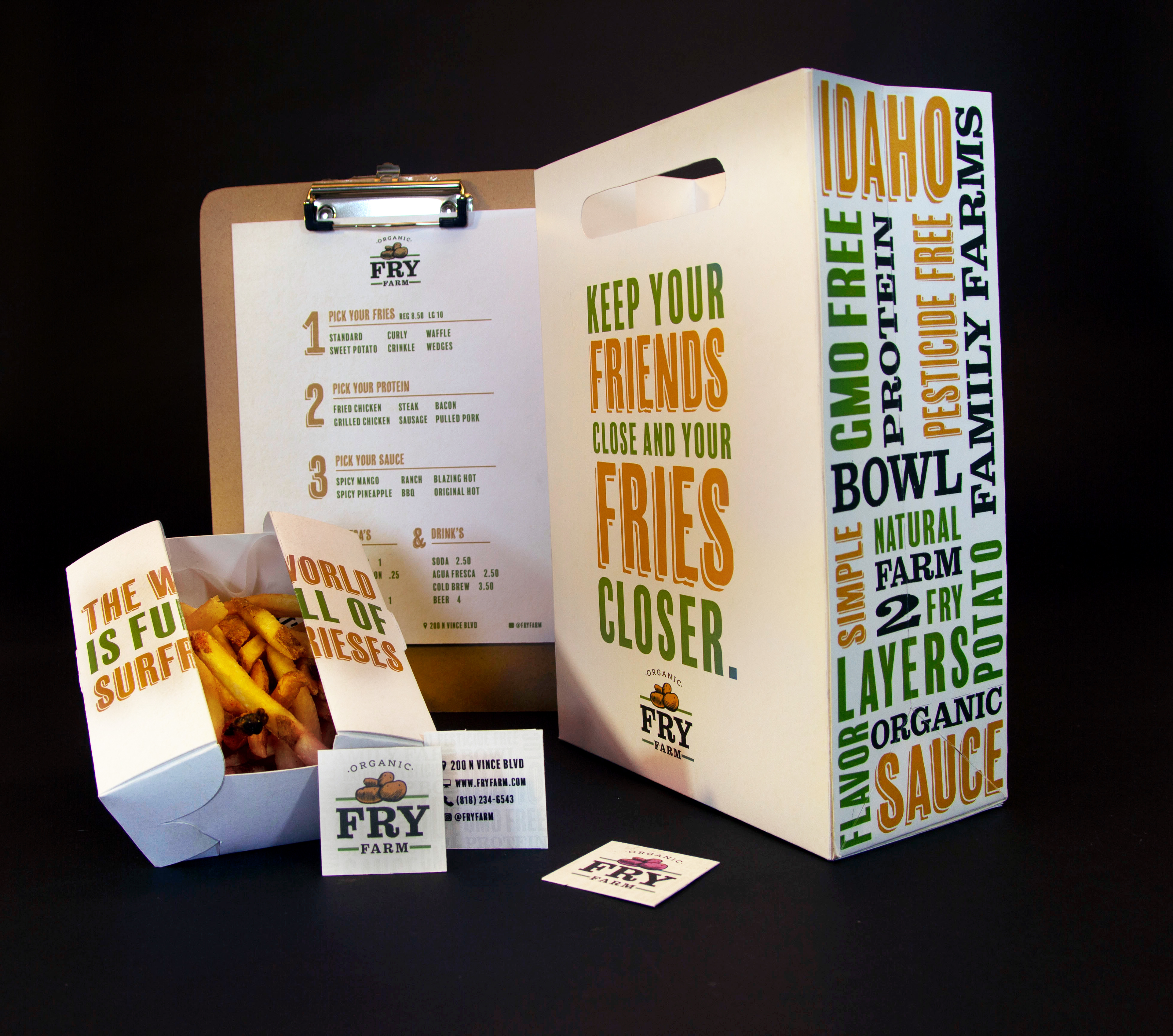 developĀ a cohesive visual identity for a gourmet loaded fries restaurant, including logo creation, packaging design, menu layout, and business card development, ensuring a unique and engaging customer experience.